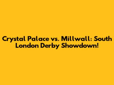 Crystal Palace Vs. Millwall: South London Derby Showdown!
